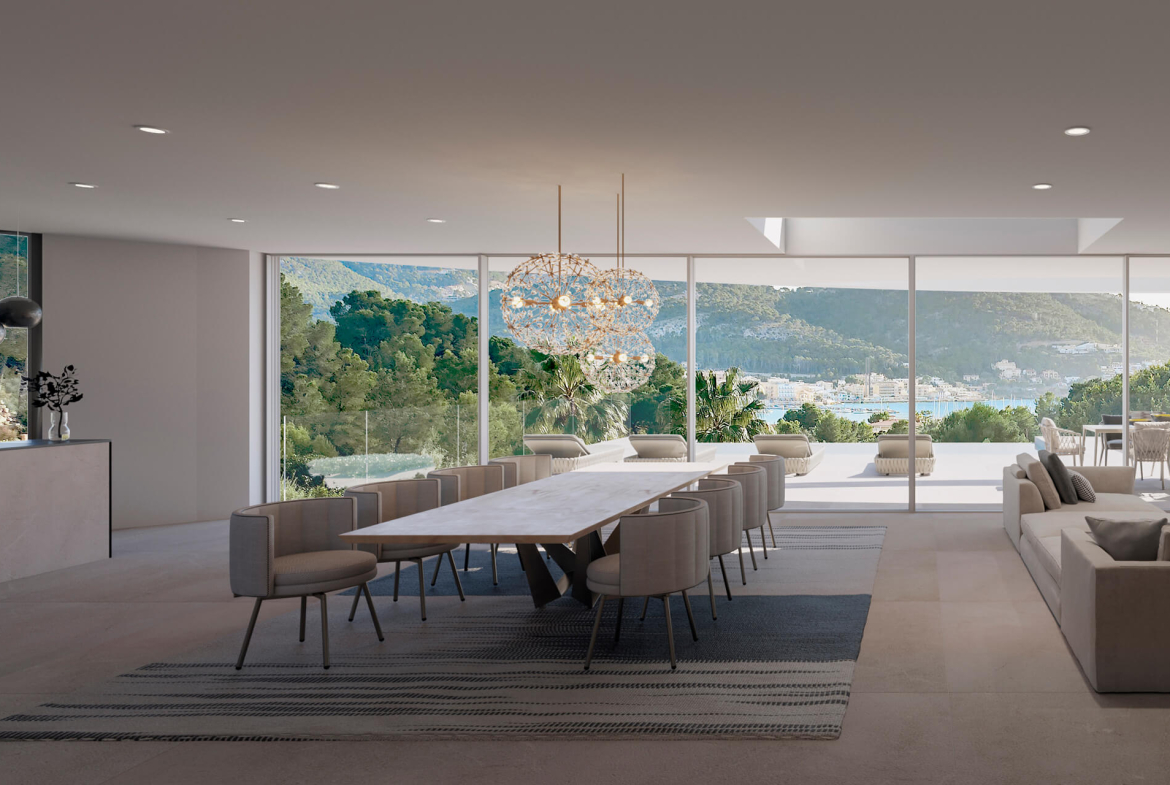 Situated in Port d’Andratx on a prime location, this contemporary style five-bedroom villa offers its future owner the best quality furnishings and fittings and the most modern amenities.