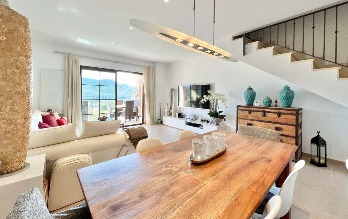 Located in a well-maintained residential complex in Camp de Mar between the fairways of the Golf d’Andratx golf course, this beautiful golf house will provide its next owner with elegance, sophistication, and most beautiful surroundings.
